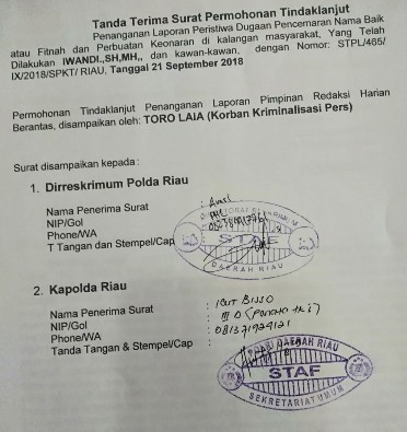 Keduanya dilaporkan dengan tuduhan pencemaran nama baik surat laporan kepolisian. _ berkas yang bertanda tangan di bawah ini :